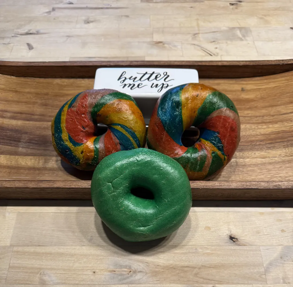 Note: While all of our bagels are free from preservatives and baked fresh, our Rainbow Bagels do contain artificial colors to achieve their vibrant look.